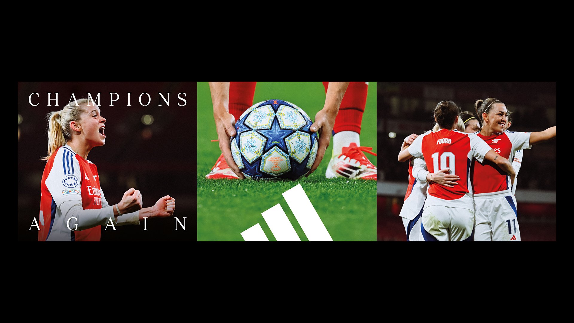 CHAMPIONS LEAGUE ADIDAS x ARSENAL The arsenal women’s team make history, again. so ADIDAS found a simple way to HONOUR them AS THE CHAMPIONS THEY ARE.